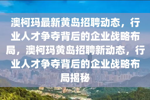 澳柯瑪在黃島地區(qū)發(fā)布了一系列招聘公告,引起了社會(huì)各界的廣泛關(guān)注,本文將結(jié)合澳柯瑪?shù)钠髽I(yè)背景、招聘概況以及行業(yè)趨勢(shì),從新聞報(bào)道的視角出發(fā),對(duì)這次招聘進(jìn)行深入剖析,并分享自己的見(jiàn)解。