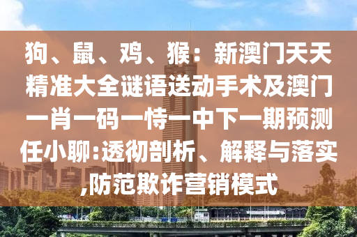 狗、鼠、雞、猴:新澳門天天精準(zhǔn)大全謎語送動手術(shù)及澳門一肖一碼一恃一中下一期預(yù)測任小聊:透徹剖析、解釋與落實,防范欺詐營銷模式
